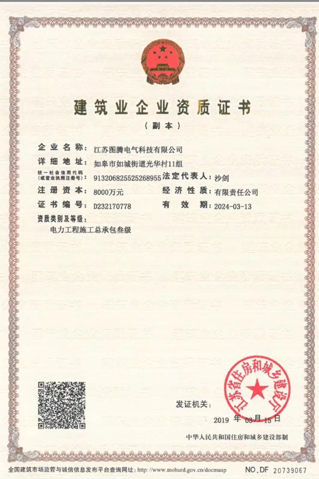 2019年3月15日,江蘇圖騰電氣科技有限公司通過國家相關(guān)部門嚴(yán)格審定認(rèn)可,獲得電力工程施工總承包三級資質(zhì)。這標(biāo)志著公司由傳統(tǒng)電力設(shè)備制造商向配電領(lǐng)域綜合服務(wù)商成功轉(zhuǎn)型,為公司提升綜合競爭力,擴(kuò)大市...