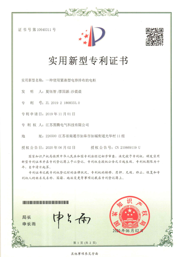 公司擁有一支由獲“國家千人計劃”項目資助者何晉偉博士領銜的高素質研發隊伍,與加拿大阿爾伯塔大學、東南大學、天津大學等海內外著名高校保持密切的合作關系,擁有一批專家級顧問和博碩研發團隊,獲得國家知識產權總局授權專利30余項。公司自主研發生產的三相不平衡治理裝置、無功補償裝置(智能低壓電容器)、有源濾波諧波治理裝置、低電壓治理裝置等產品,獲得了用戶的廣泛好評。電纜分支箱、環網柜、開關柜、柱上開關等中、高壓配電設備,銷售遍及海內外。企業先后取得“江蘇省級電力技術研發中心”、“江蘇省守合同重信用單位”、“江蘇省高技術企業”、“江蘇省民營科技企業”等榮譽。圖騰電氣愿與廣大用戶共同努力,為廣大用戶提供先進的技術和優質的服務,熱忱歡迎社會各界朋友對我司產品咨詢了解,同時恭迎您蒞臨我公司考察指導,洽談合作!